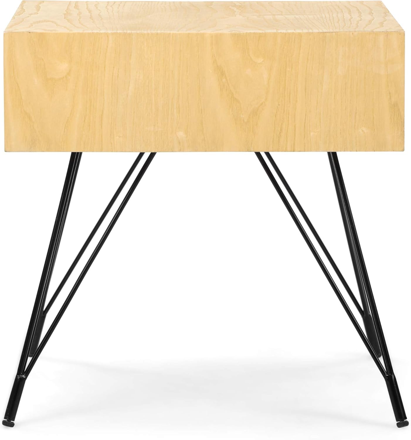 This accent table has charming mid century modern styling and easily adds extra storage space in your living room, den or bedroom. This table is constructed with sturdy black metal legs and features a light wood drawer that can be used to store smaller room items. This side table has a simple, slim profile and the compact footprint makes it ideal for small spaces.